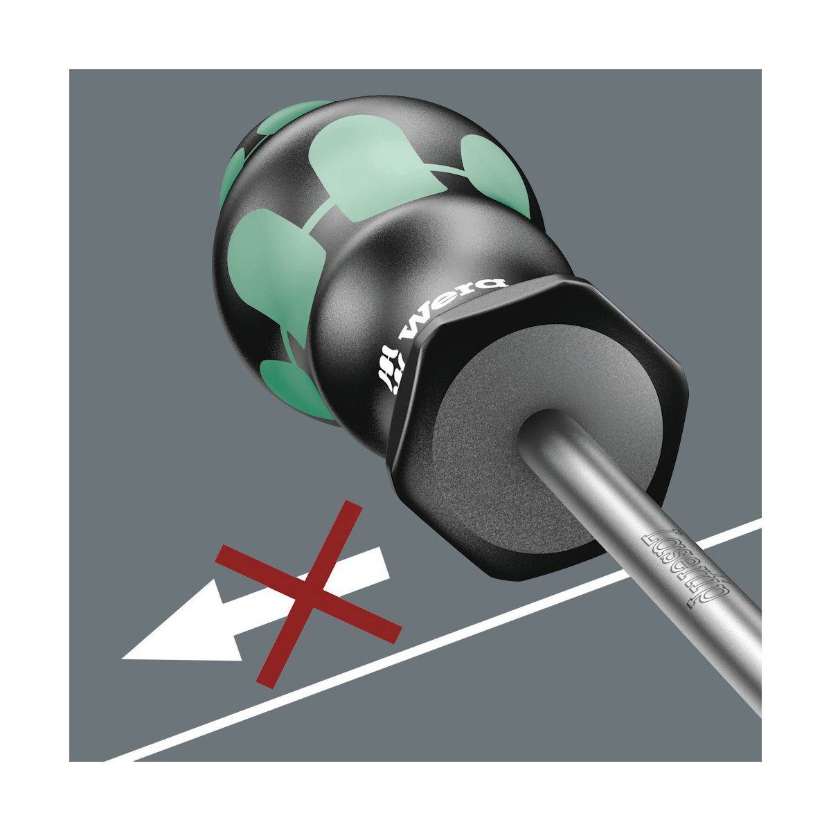 Высококачественная отвёртка Kraftform Plus. Многокомпонентная ручка Kraftform для работы в быстром и щадящем режиме. Kraftform Plus: твердые зоны ручки для высокой скорости работы, в то время как мягкие зоны ручки обеспечивают передачу больших моментов силы. Hex-Plus увеличивает площадь контакта с головкой винта. За счёт этого до минимума снижается концентрация напряжения в профиле, что практически исключает вероятность разрушения головки винта. С индикаторами инструментов "Take it easy": Цветовая маркировка профиля и гравировка размера. Шестигранный край ручки предотвращает надоедливое перекатывание отвёртки на рабочем месте.