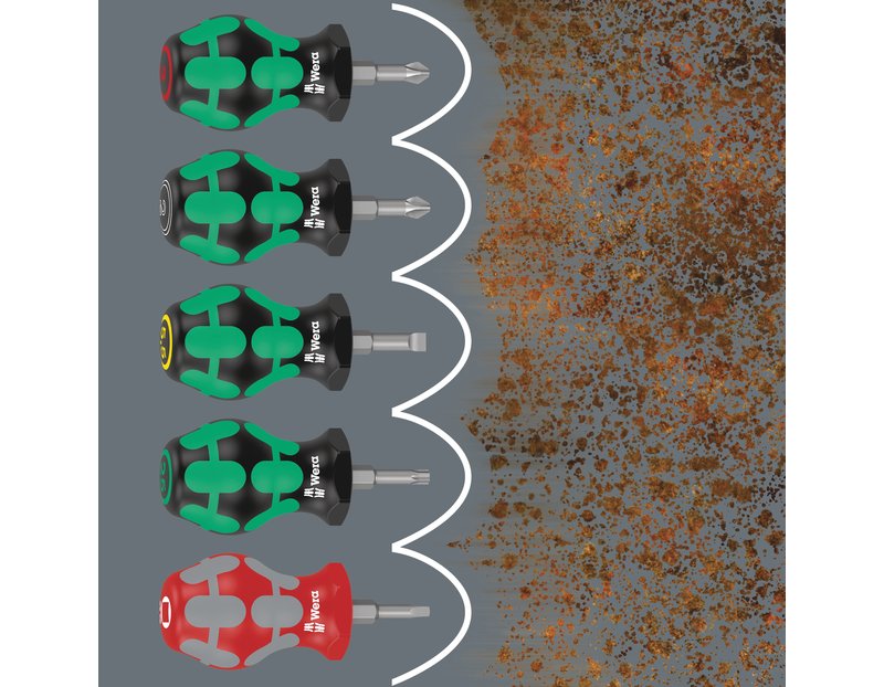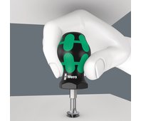 Особо короткая отвёртка для труднодоступных мест. Двухкомпонентная ручка Kraftform с практичным сочетанием мягких и твёрдых зон обеспечивает уверенный хват рукой и точные манипуляции. Рабочие концы изготовлены по той же технологии, что и биты Wera. Специальная обработка поверхности для особой защиты от коррозии и оптимальной посадки в головке винта. Шестигранный край ручки предотвращает надоедливое перекатывание отвёртки на рабочем месте.
