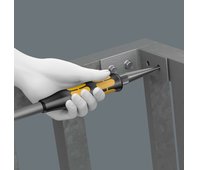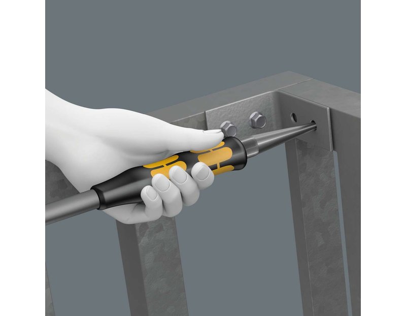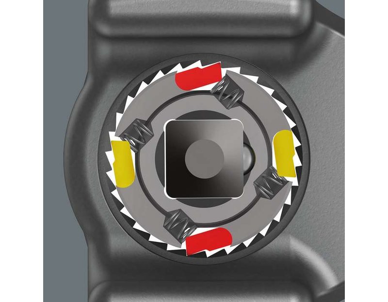 Трещотка, которой разрешено пользоваться как молотком. Трещотка "KOLOSS" - это сверхпрочная трещотка с реверсом и с минимальной нагрузочной способностью 600 Нм. Двойное зубчатое зацепление и минимальный угол возврата 6° обеспечивают быстрое и точное завинчивание даже в узком пространстве. И самое главное: абсолютно никакой удар не сможет разрушить механизм трещотки. Многокомпонентная ручка Kraftform специально оптимизирована для нажимной, ударной и растягивающей нагрузки; с гнездом в ручке для удлинителя KOLOSS 8780 C или разжимной оправки KOLOSS 8781 C. В комплект входит накладка для защиты материала или поверхности деталей, удлинитель для увеличения передачи усилий, деблокиратор, кожух для крепления на поясе.