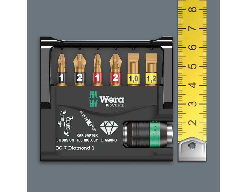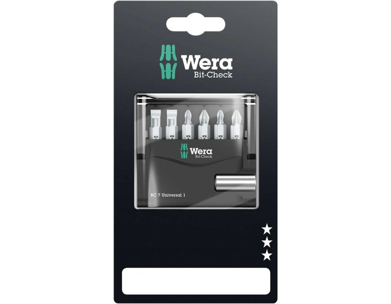 6 битов Wera удобно и компактно размещены в практичном наборе Bit-Check. Закалённые до вязкой твёрдости биты Wera под внутренний шестигранник, для универсального применения. 1 универсальный держатель 893/4/1 K для установки в шуруповерт или патрон электродрели.