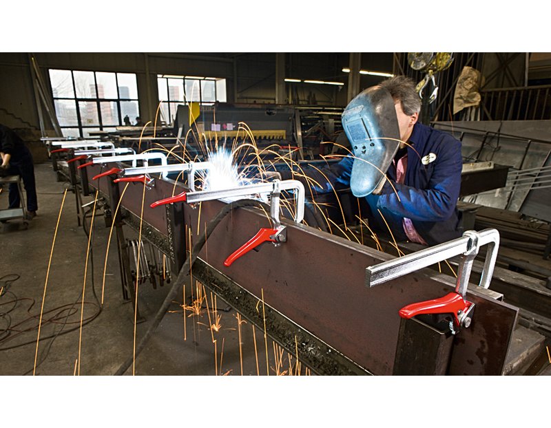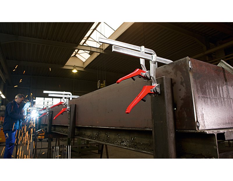 Оптимизированная форма профиля позволяет, экономя силы, создавать равномерное давление особенно при зажиме на полную длину струбцины. Фиксированная скоба с формованной опорной пластиной выполнена из цельной заготовки с использованием улучшенной стали с оцинковкой, что обеспечивает устойчивость к высоким нагрузкам и скручиванию._x000D_