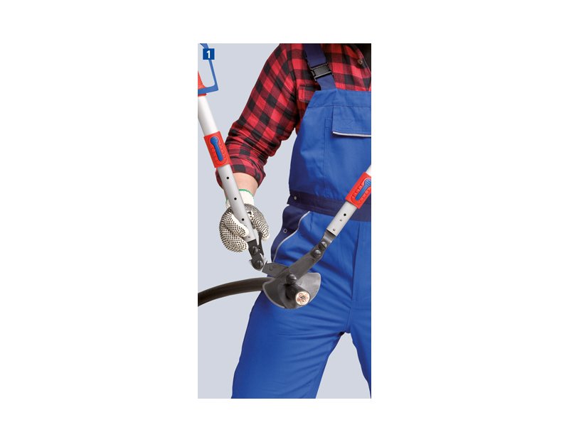 Для диаметров кабеля до 38 мм, угол ручек регулируется для настройки оптимального расстояния между ручками, также пригодны для работы в стесненных условиях_x000D_