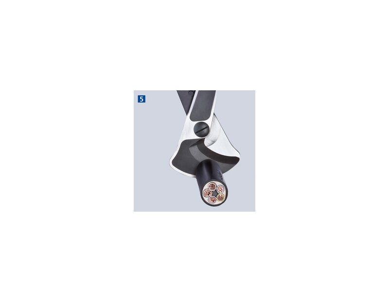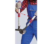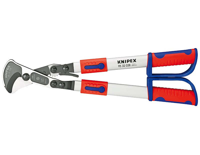 95 32 038 Кабелерез Ножницы для резки кабеля с регулируемыми по длине и углу раздвижными ручками. для диаметров кабеля до 38 мм, угол ручек регулируется для настройки оптимального расстояния между ручками, также пригодны для работы в стесненных условиях. удобство в работе благодаря использованию принципа трещотки и малому весу. рассчитанная на большую нагрузку раздвижная ручка из алюминиевой трубы овального сечения; увеличивается до 770 мм для максимальной длины плеча рычага при резке кабеля большого сечения, задвигается до длины 570 мм для минимального размера при транспортировке. сменная режущая головка. большой диапазон резки до макс. Ø 38 мм или макс. 280 мм² (например, силовой кабель NYY 4 x 70 мм²) при работе с кабелями из меди и алюминия. легкая, чистая резка благодаря оптимальной геометрии режущих кромок. шарнир винтовой регулируемый. - Параметры режима резки: медный кабель, многопроводный: 280mm² - Параметры режима резки: медный кабель, многопроводный: Ø 38mm - MCM: 550
