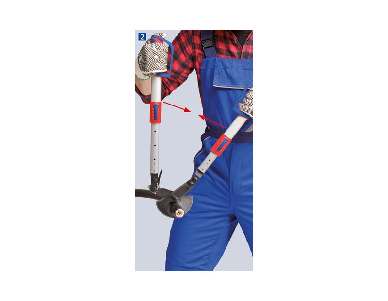 Увеличивается до 770 мм для максимальной длины плеча рычага при резке кабеля большого сечения, задвигается до длины 570 мм для минимального размера при транспортировке_x000D_