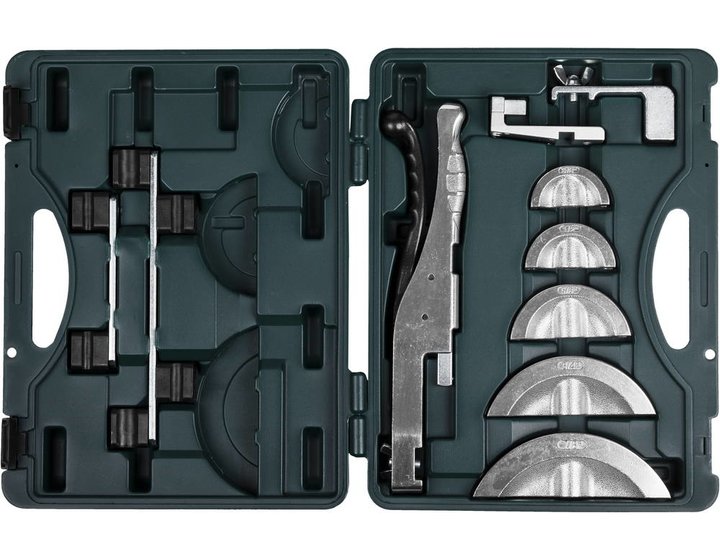 Ручной трубогиб KRAFTOOL 23501-H6, используется при монтаже систем водоснабжения, отопления и кондиционирования, систем подогрева пола, гидравлических систем. Применяется для высокоточной гибки труб из мягкой меди, алюминия, мягкой меди в оболочке, тонкостенной стали и нержавеющей стали под углом до 90°. Трубогиб разработан в соответствии с высокими требованиями профессионалов и помогают обеспечивать комфортную и эффективную работу. Литой корпус из высококачественной стали. Металлические гибочные сегменты. Рычажная конструкция позволяет работать одной рукой в труднодоступных местах. Точное и быстрое изготовление изгибов различной формы во всех плоскостях. Быстрая замена гибочных сегментов. Быстрое высвобождение трубы и возврат гибочного сегмента в исходное положение. Удобный пластиковый кейс для хранения и переноски.