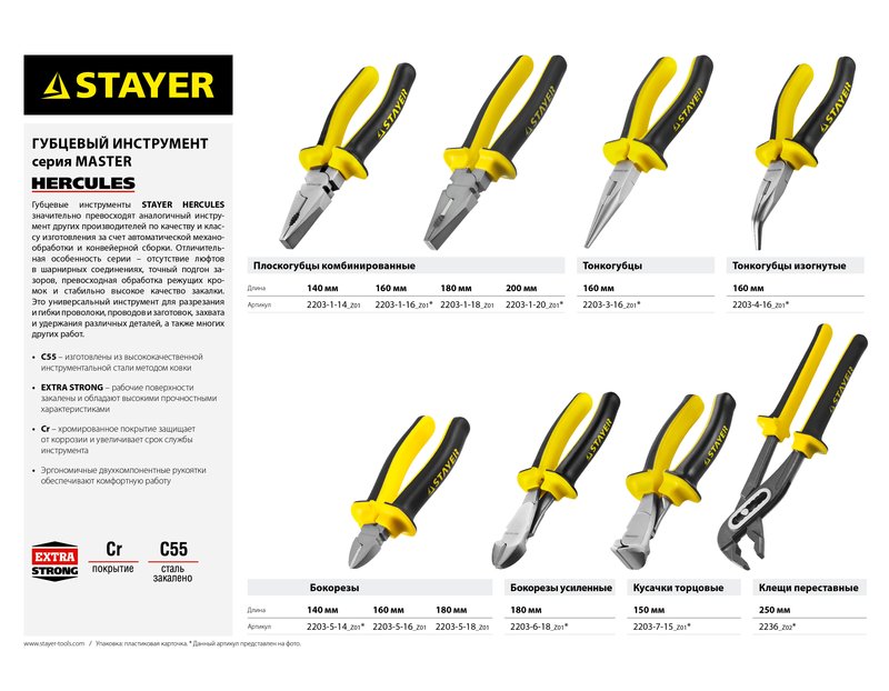 Плоскогубцы комбинированные STAYER 2203-1-18_z01, предназначены для захвата и удерживания мелких предметов, перекусывания проволоки средней твердости и других слесарных работ. С защитным хромированным покрытием обладают повышенным ресурсом, обеспечивают длительную и качественную работу.