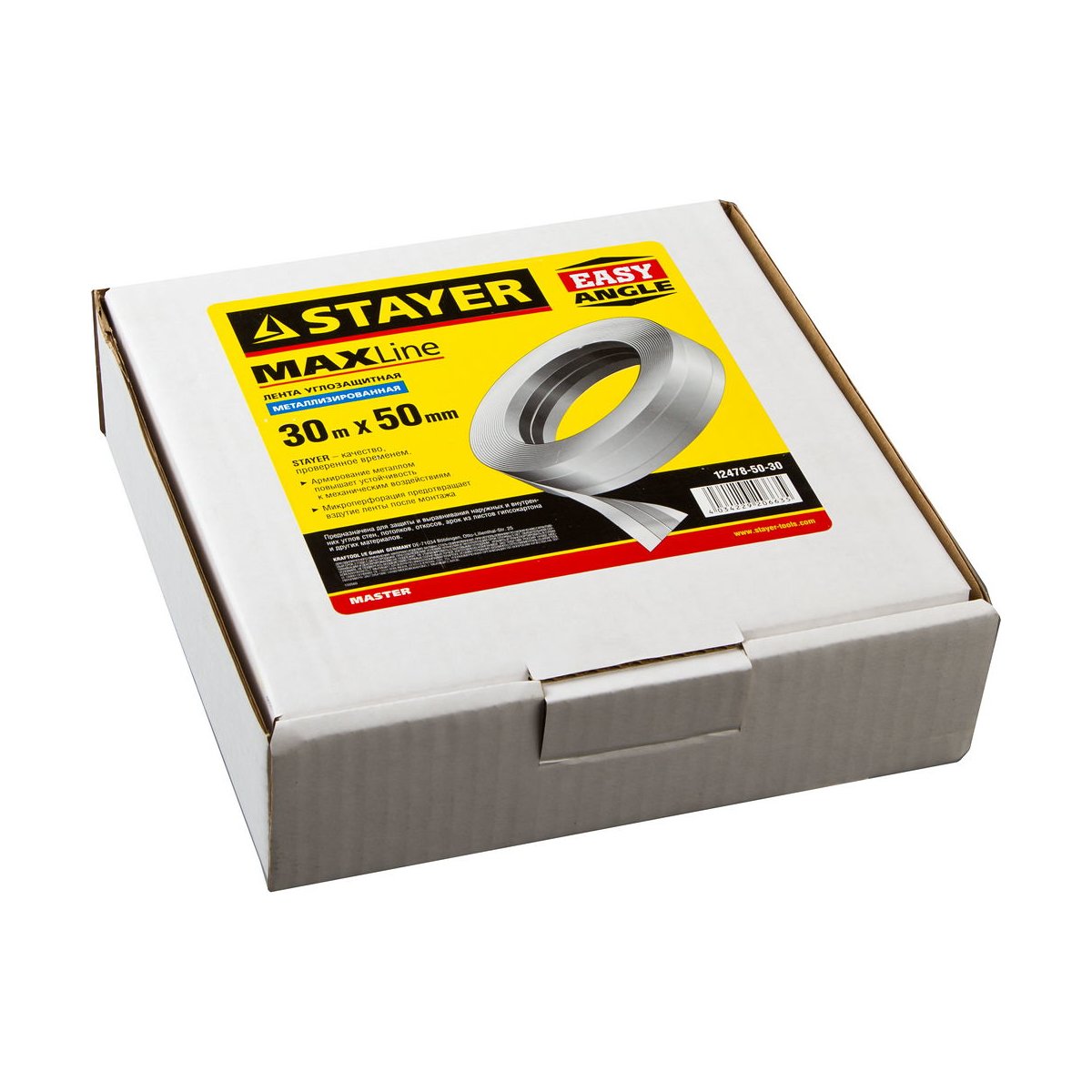 Лента углозащитная STAYER 12478-50-30, предназначена для защиты и выравнивания наружных и внутренних углов стен, потолков, откосов, арок из листов ГКЛ. Армирование металлом повышает устойчивость к механическим воздействиям, а нанесенная микроперфорация предотвращает вздутие ленты после монтажа.