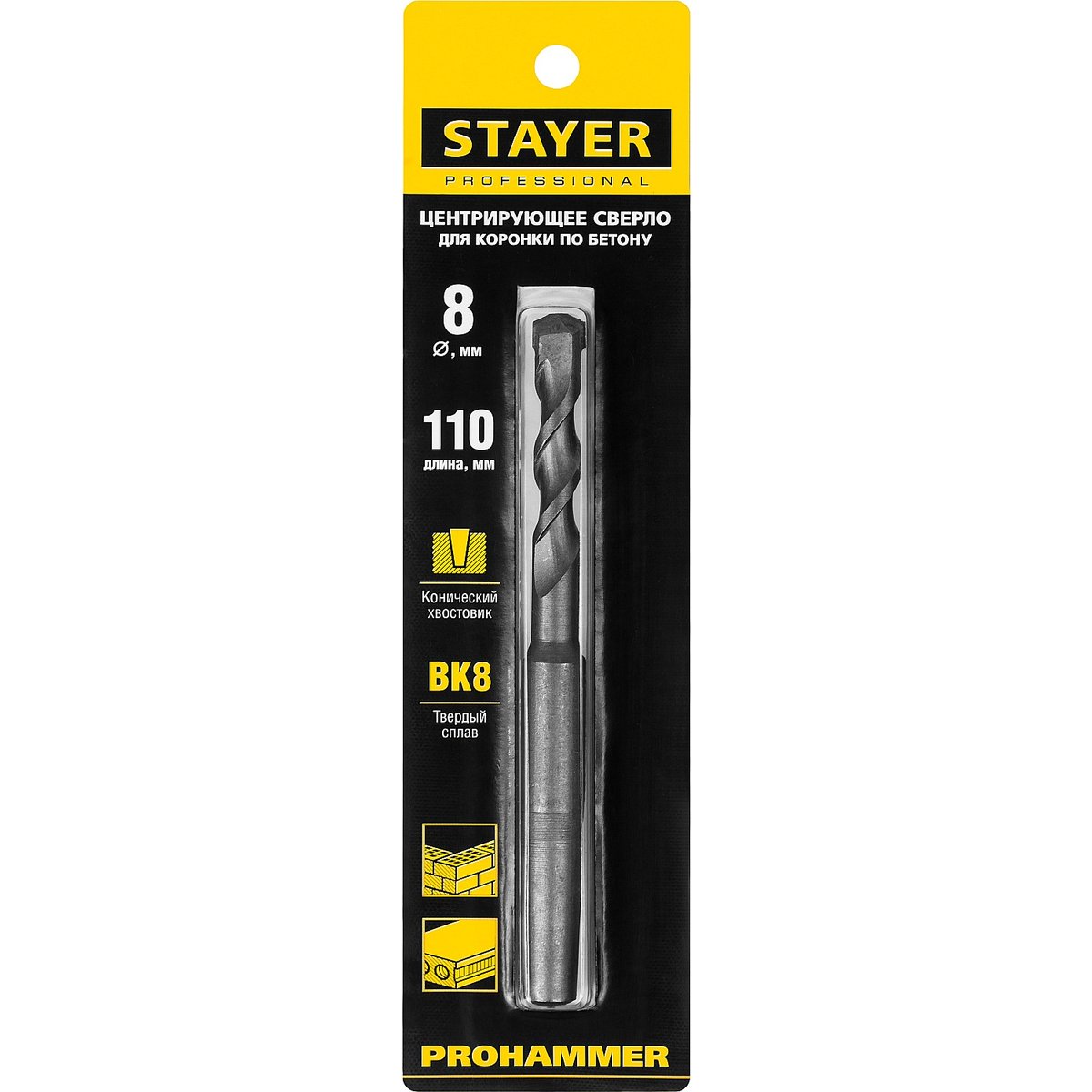 Сверло центрирующее STAYER 29193-08_z01, предназначено для работ по бетону, граниту, природному и искусственному камню, кирпичной кладке. Необходимо для центровки коронки.