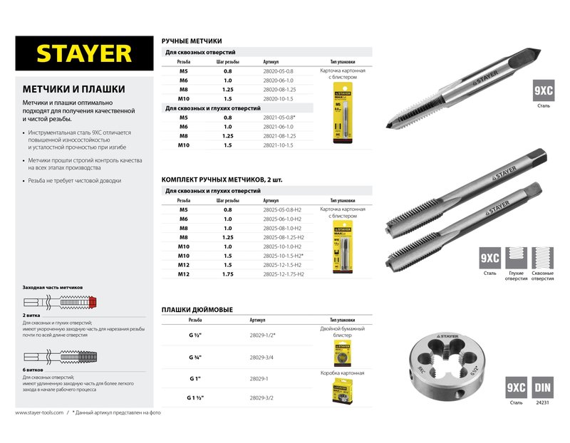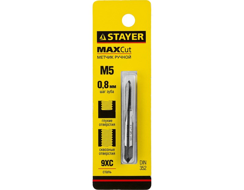 Метчик STAYER 28021-05-0.8, предназначен для ручного нарезания внутренней метрической резьбы в различных конструкциях и заготовках из стали или цветных металлов. Оптимально подходит для получения качественной и чистой резьбы в сквозных и глухих отверстиях в сталях и цветных металлах. Метчик изготовлен из инструментальной стали 9ХС в соответствии с ГОСТ 3266-81. что гарантирует постоянно высокое качество.