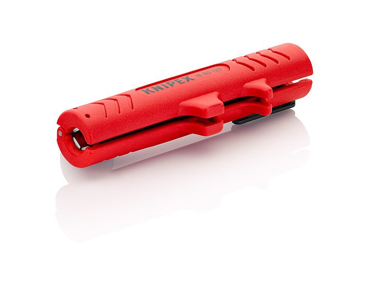 16 80 125 SB Универсальный инструмент для удаления оболочки для удаления оболочки и изоляции с наиболее часто применяемых круглых кабелей и кабелей для сырых помещений Ø 8,0 - 13,0 мм(например, для кабелей NYM от 3 x 1,5 мм² до 5 x 2,5 мм²). также для работ в ответвительных или распределительных коробках. инструмент для снятия изоляции с корпусом из двух раскрываемых половин. С раскрывающей пружиной и замком. крепежный зажим для хранения инструмента. - параметры удаления изоляции (диаметр): Ø 8 – 13mm - Тип кабеля: кабель типа NYM 3 x 1,5 мм2 - 5 x 2,5 мм²