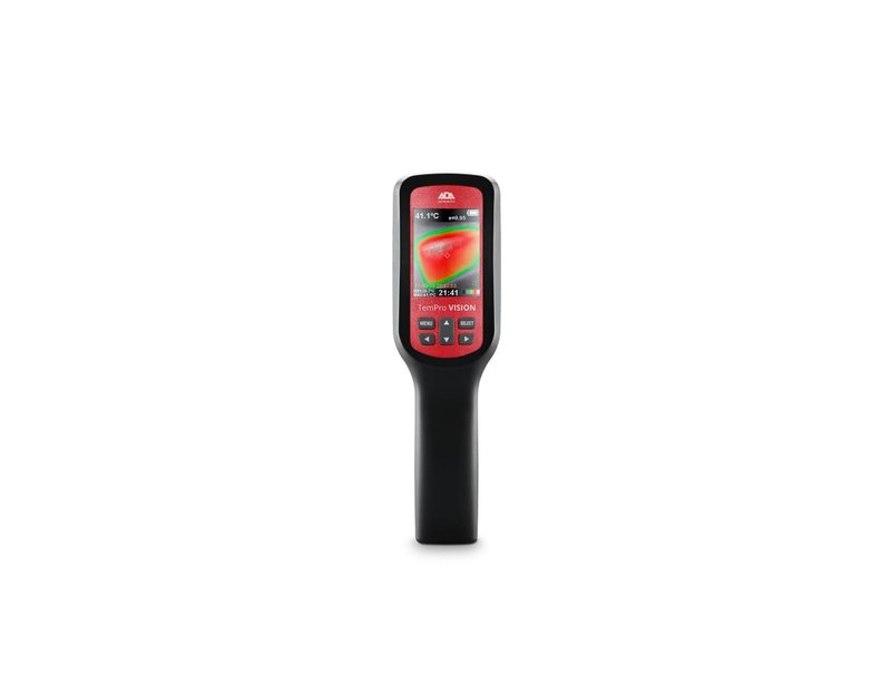 ADA TemPro VISION - электронное устройство для измерения температуры в ИК спектре в диапазоне -20°...+350°С. Прибор позволяет фиксировать видимое и инфракрасное (ИК) изображения вместе с измеренными данными и сохранять их на карте памяти для последующего анализа, а также составления отчетов. Он позволяет визуализировать проблемные участки в процессе проведения технического обслуживания оборудования и систем, а также контролировать производственный процесс, предупреждать риск возгорания, осуществлять поиск утечек тепла или скрытых тепловых коммуникаций.