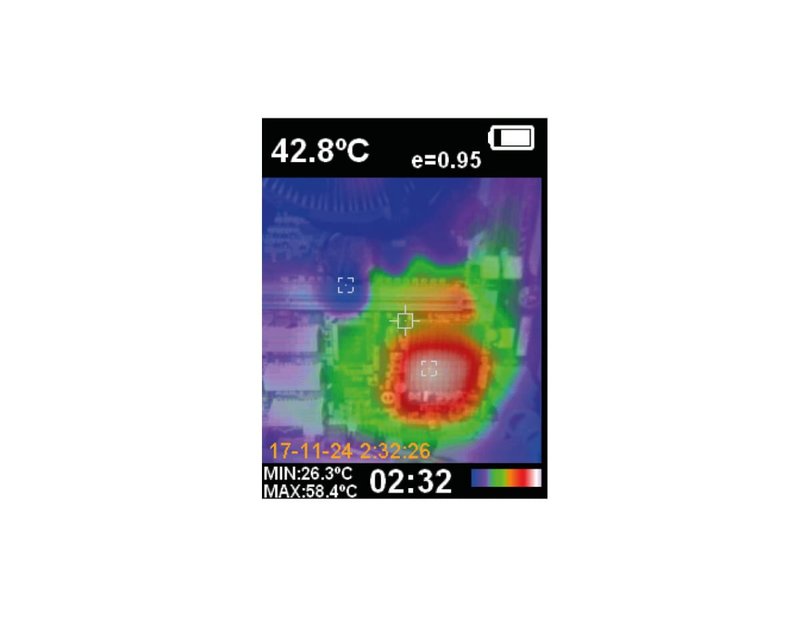 Автоматическое распознавание горячей/холодной точек. Режим выделения точек с максимальной и минимальной температурами упрощает работу по их поиску на объекте. Точки критических температур видно непосредственно на дисплее тепловизора. Полученные данные можно сохранять в виде снимков.