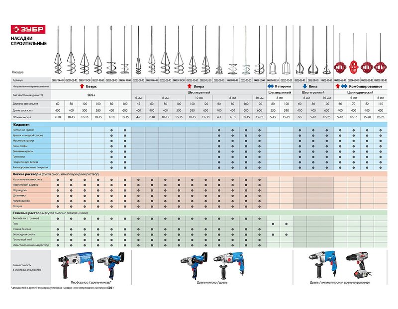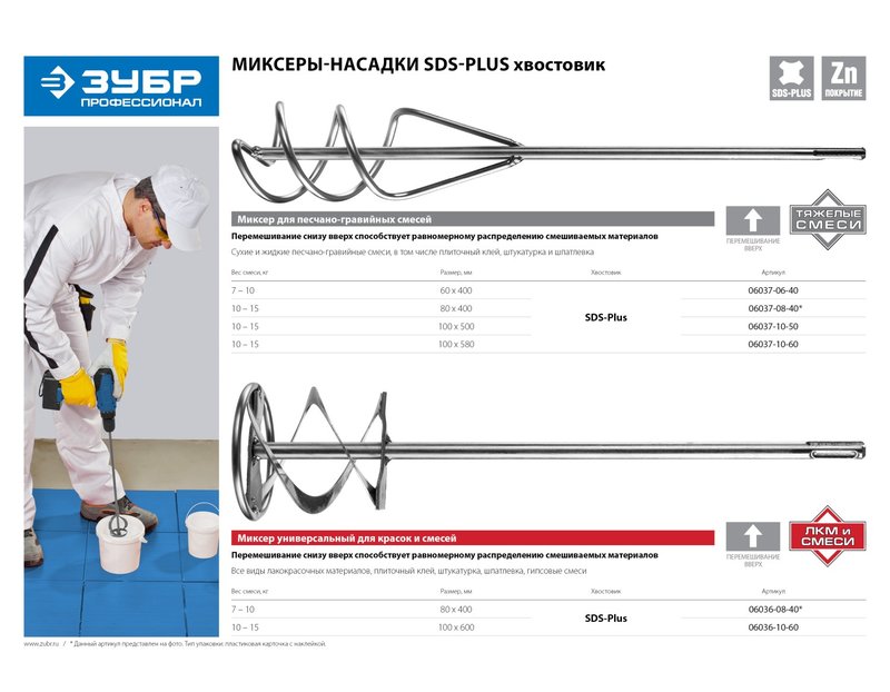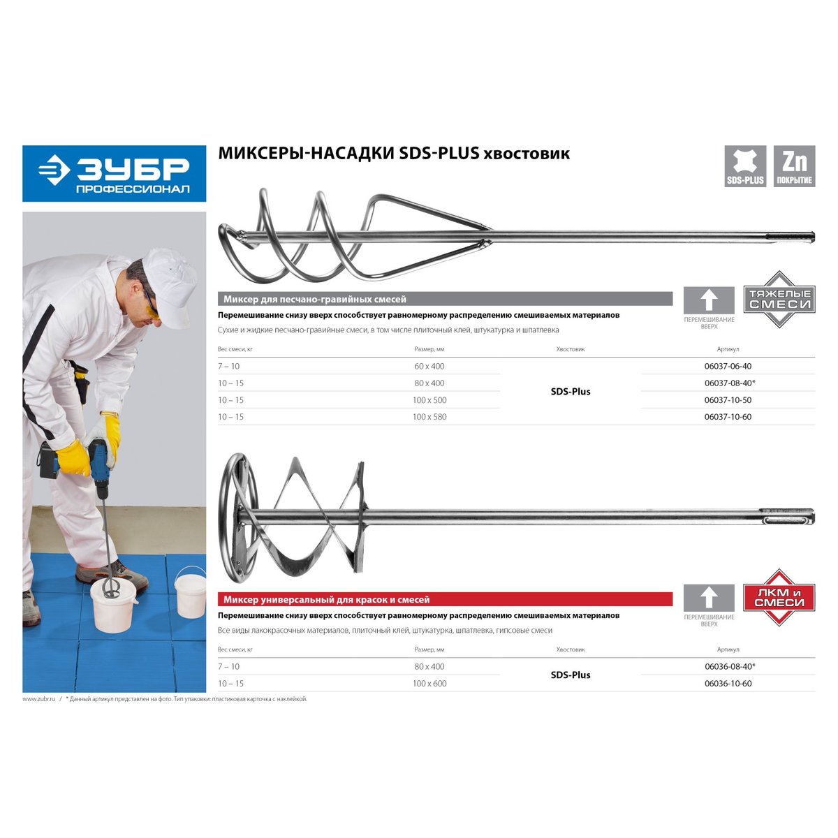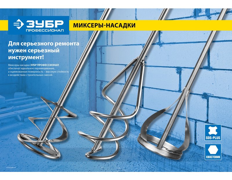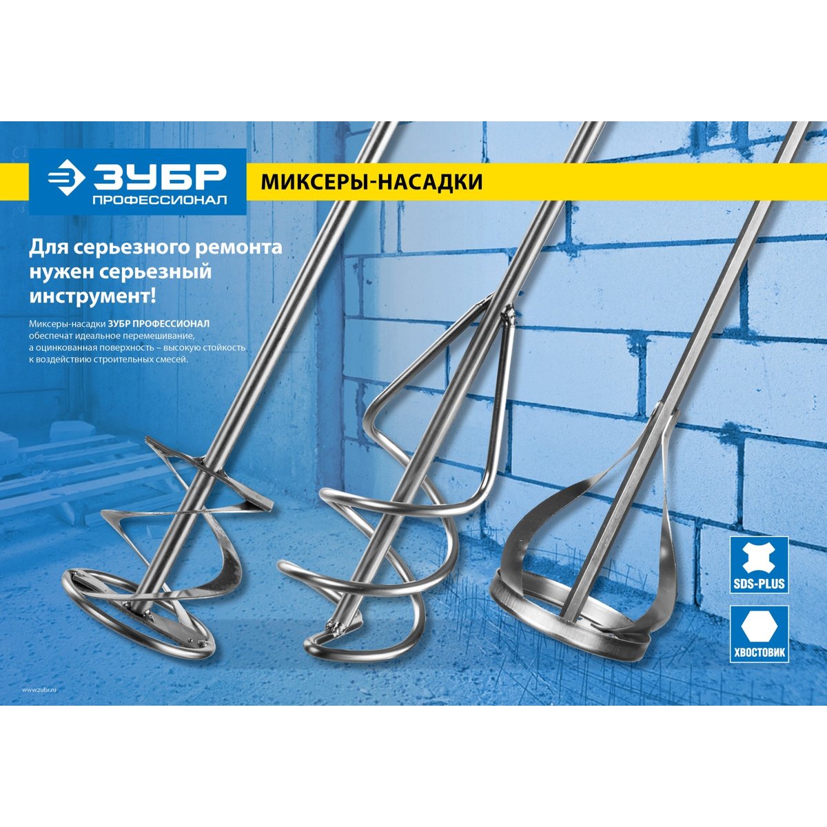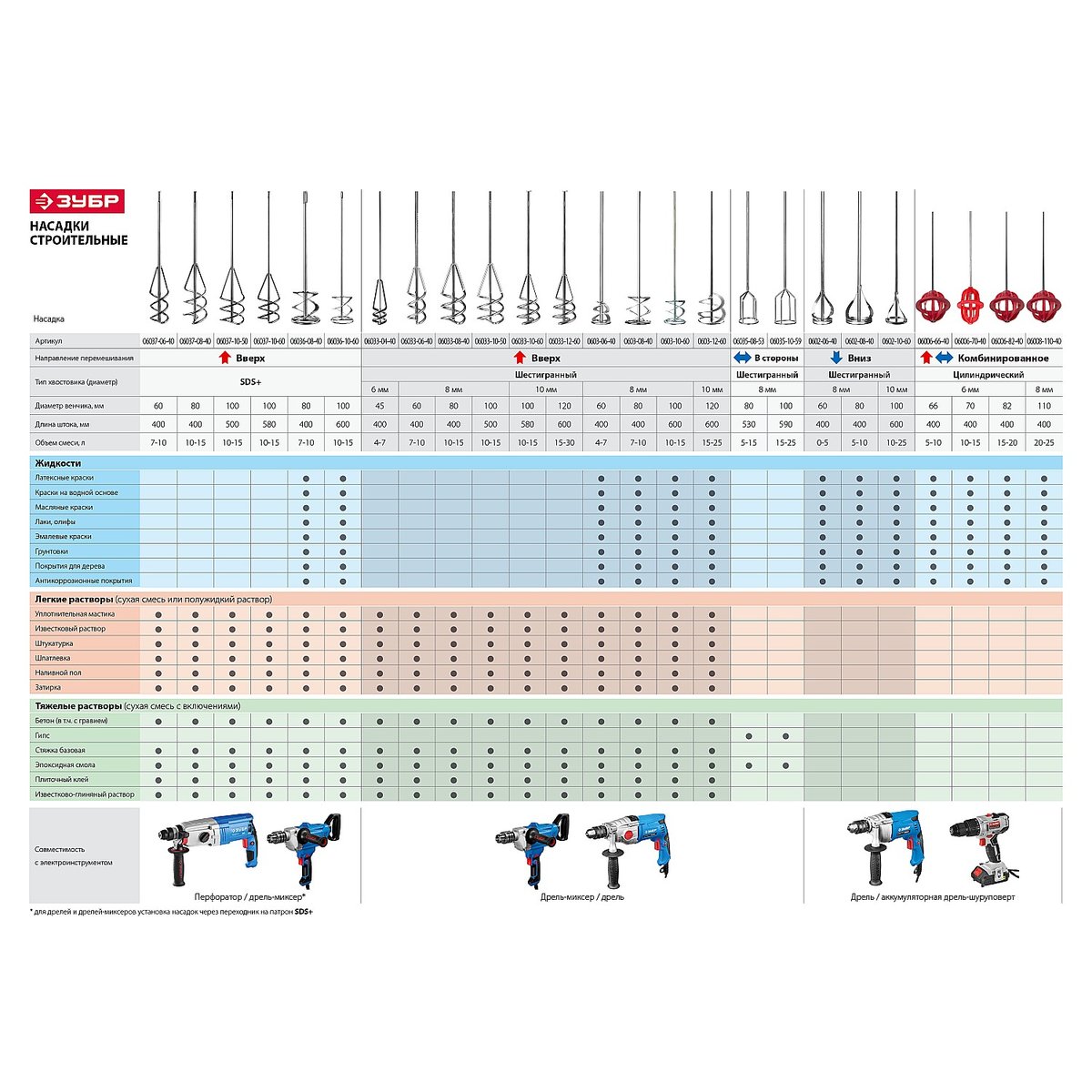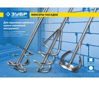 Насадка для строительного миксера ЗУБР 06037-06-40, предназначена для равномерного распределения смешиваемых материалов. Спиралевидная структура рабочей части обеспечивает эффективное перемешивание с направлением потока смеси вверх. Используемая сталь с уникальным покрытием защитит насадку для миксера от внешних воздействий.