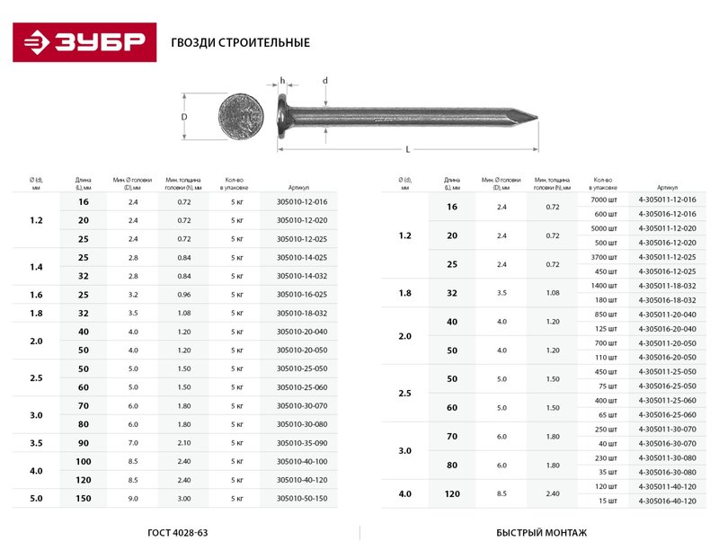 Гвозди 305010-30-070 являются самым распространенным и удобным крепежом при сборке различных конструкций с использованием дерева. Строительные гвозди изготовлены из высококачественной стали в строгом соответствии с действующими стандартами. Быстрый и легкий монтаж: гвоздь просто забивается молотком через прикрепляемую деталь. Для сборки деревянных конструкций, крепления тонколистового металла до 0.9 мм.