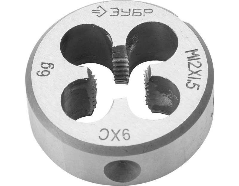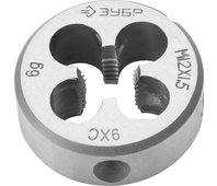 Плашка метрическая М12 x 1.5 ЗУБР 4-28022-12-1.5, предназначена для нарезания внешней, метрической резьбы на изделиях из стали и цветных металлов. Изготовлена по ГОСТ 9740-7.