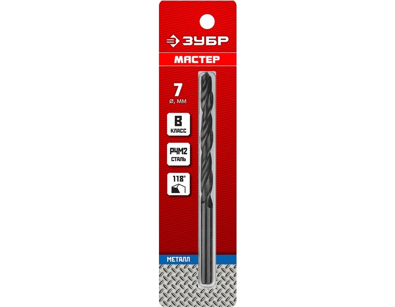 Сверло ЗУБР 29605-7, предназначено для обработки легированных и углеродистых сталей, цветных металлов, серого чугуна и пластмассы. Универсальное сверло для большинства задач. Изготовлено методом винтового проката по ГОСТ 10902-77 и соответствует классу точности "В". Угол заточки 118 градусов позволяет обрабатывать легированные и углеродистые стали.