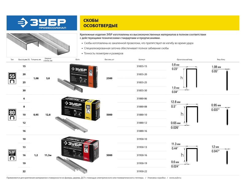 Скобы ЗУБР 31880-12, предназначены для скрепления листовых материалов – бумаги, картона, кожи, пленок между собой с помощью степлера.